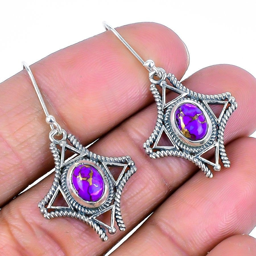 Natural Copper Purple Turquoise Sister Handmade Drop Earrings 925Ā SolidĀ Silver