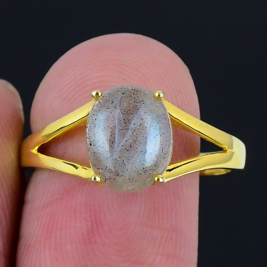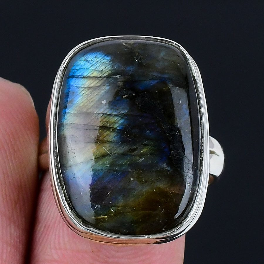 Labradorite Stone Sterling Silver Wedding Statement Mother New Ring Jewelry US 8