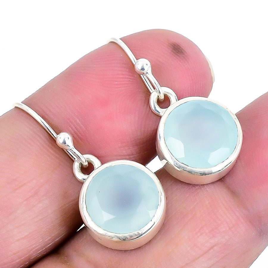 Daughters Day Deal Aqua Chalcedony Gemstone 925 Silver Dangle Drop Wife Earrings