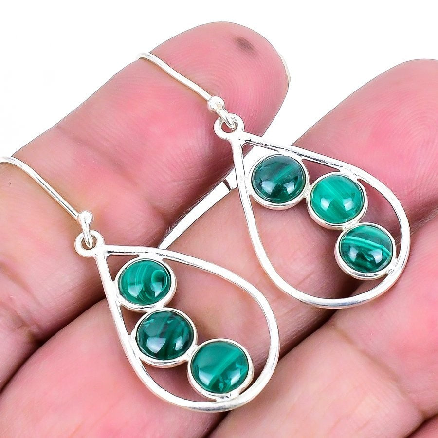 Natural Malachite Drop Best Daughters Gift Wife Earrings Jewelry Sterling Silver