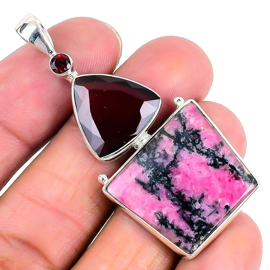 Rhodonite Stone Anniversary Bezel Wedding Daughter Pendant Jewelry Solid Silver