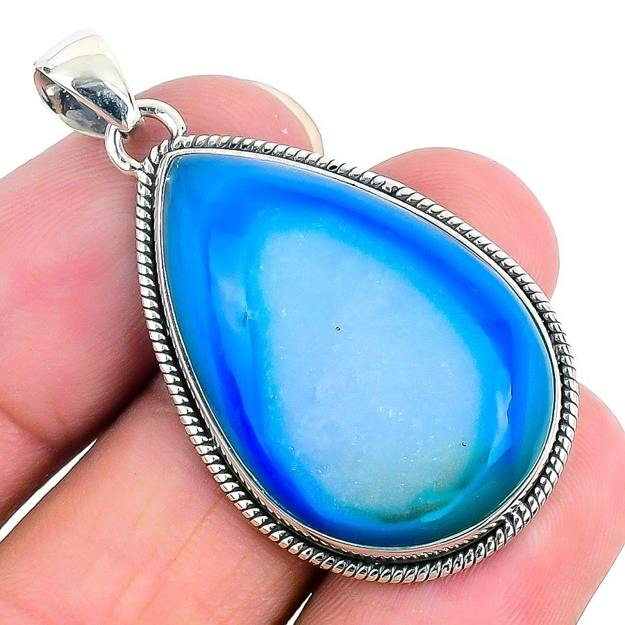 Blue Druzy Stone Bezel Sister Trendy Wedding Pendant Jewelry 925Ā SolidĀ Silver