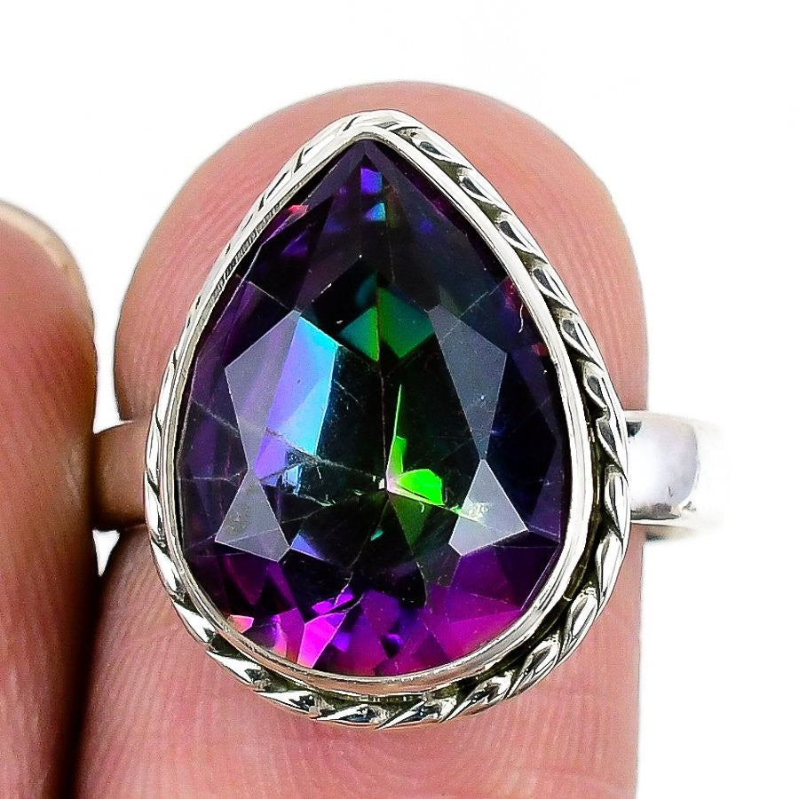 Mystic Topaz Gemstone 925Ā SolidĀ Silver Bezel Statement Daughter Gift Ring US 7.5