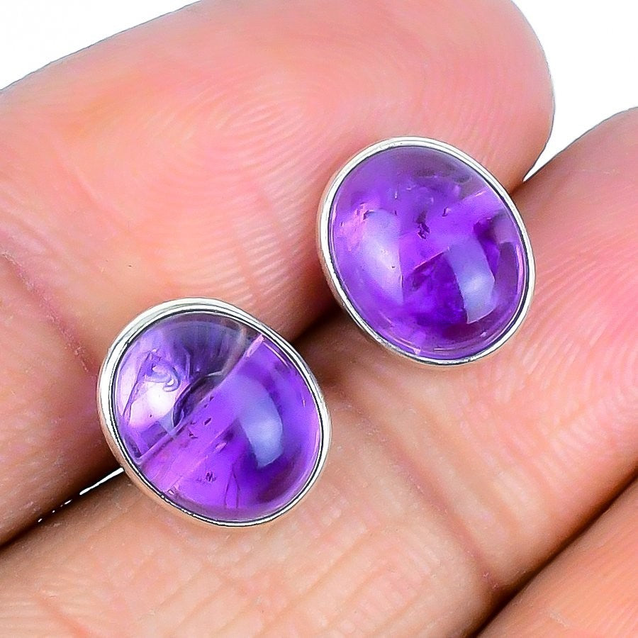 Sage Amethyst Gemstone New Stud Post Daughter Gift Earrings Jewelry Solid Silver