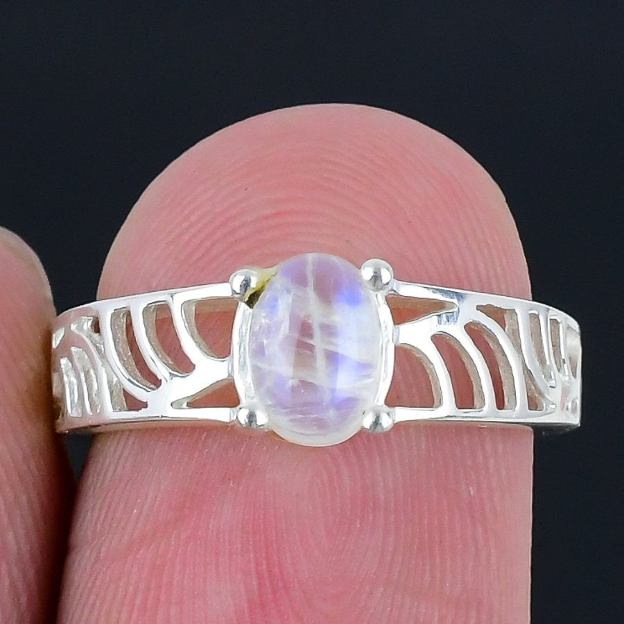 June Birth Moonstone Gemstone 925 Silver Mother Wedding Statement Ring Size 6