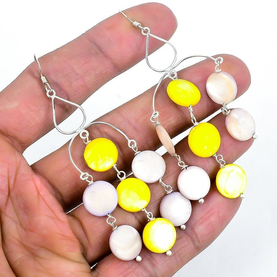 Yellow Blister Pearl Stone Sterling Silver Drop Dangle Handmade Earrings Jewelry
