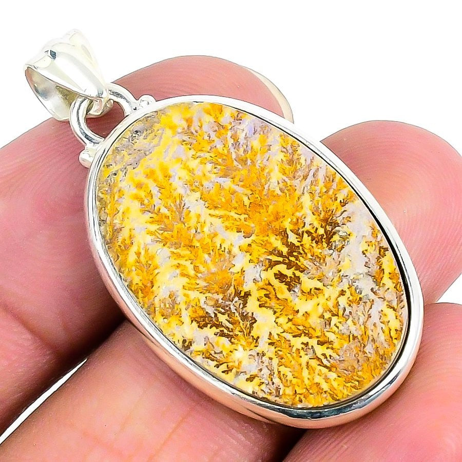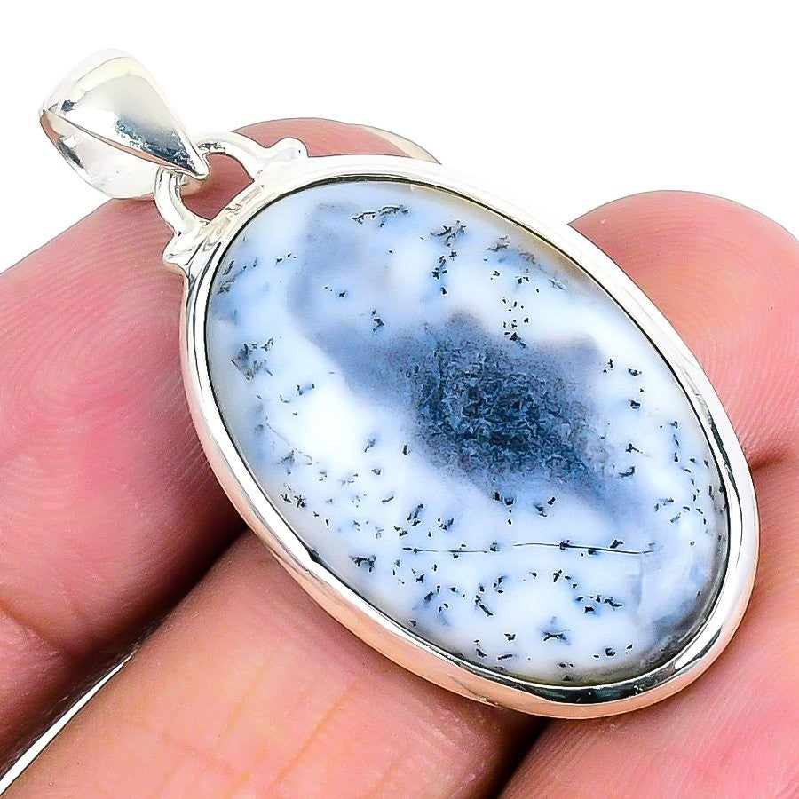 Dendrite Opal Stone Wife Wedding Bezel Boho Pendant Jewelry 925 Sterling Silver