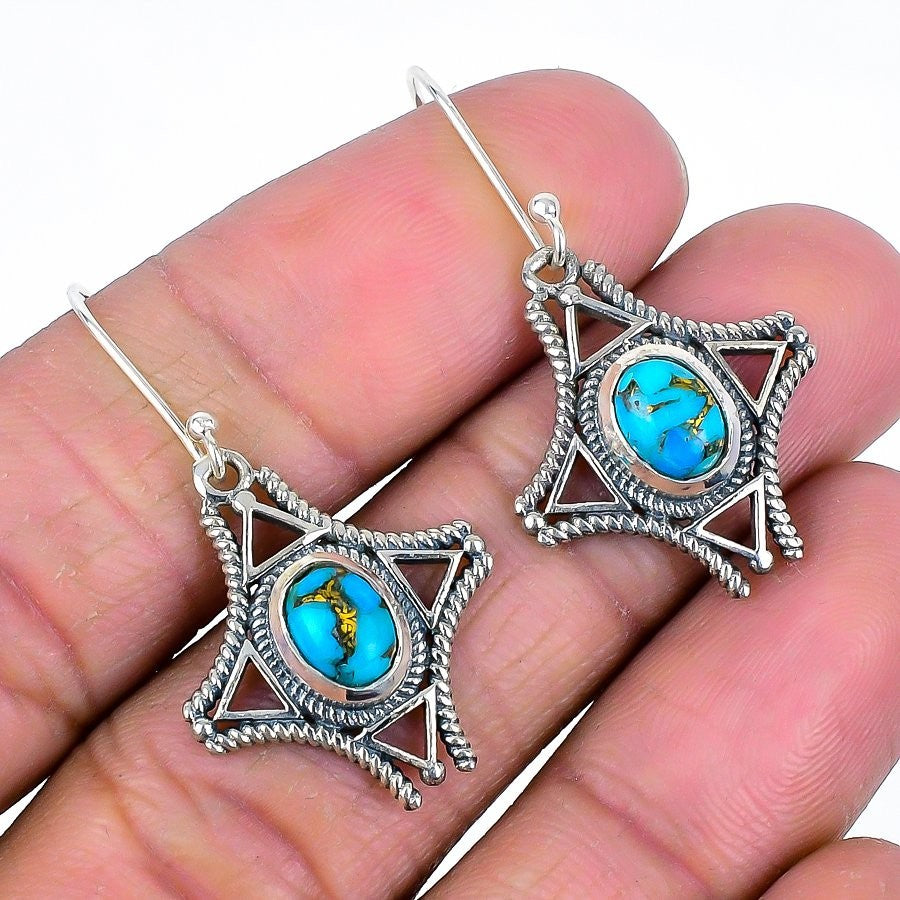 Natural Copper Blue Turquoise 925 Silver December Wife Dangling Earrings Jewelry
