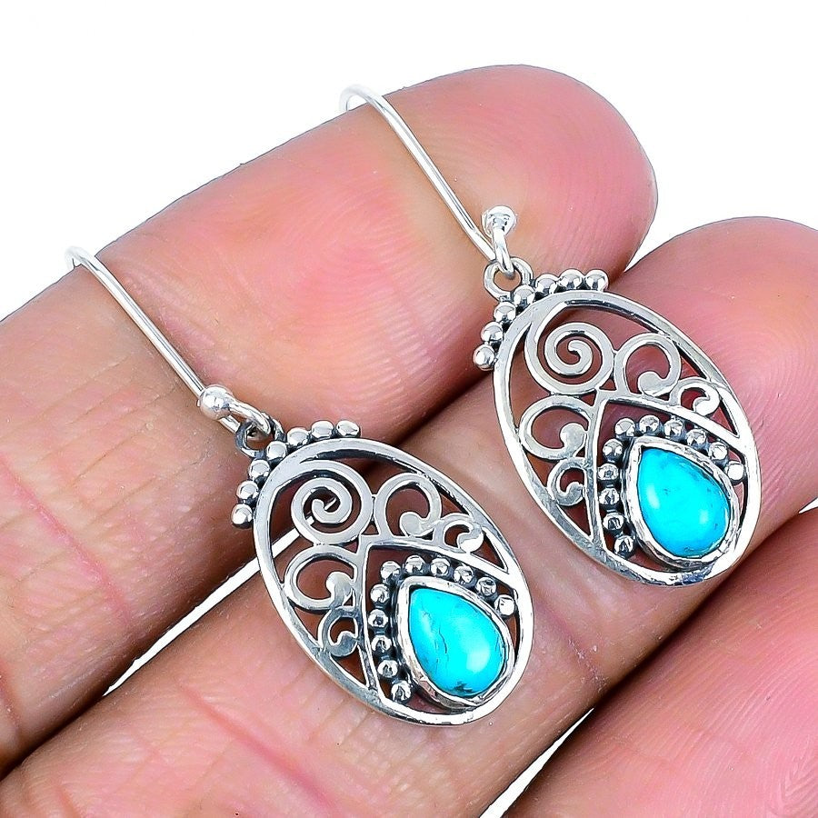 Arizona Turquoise Stone Daughters Day Elegant Drop Earrings Jewelry Solid Silver