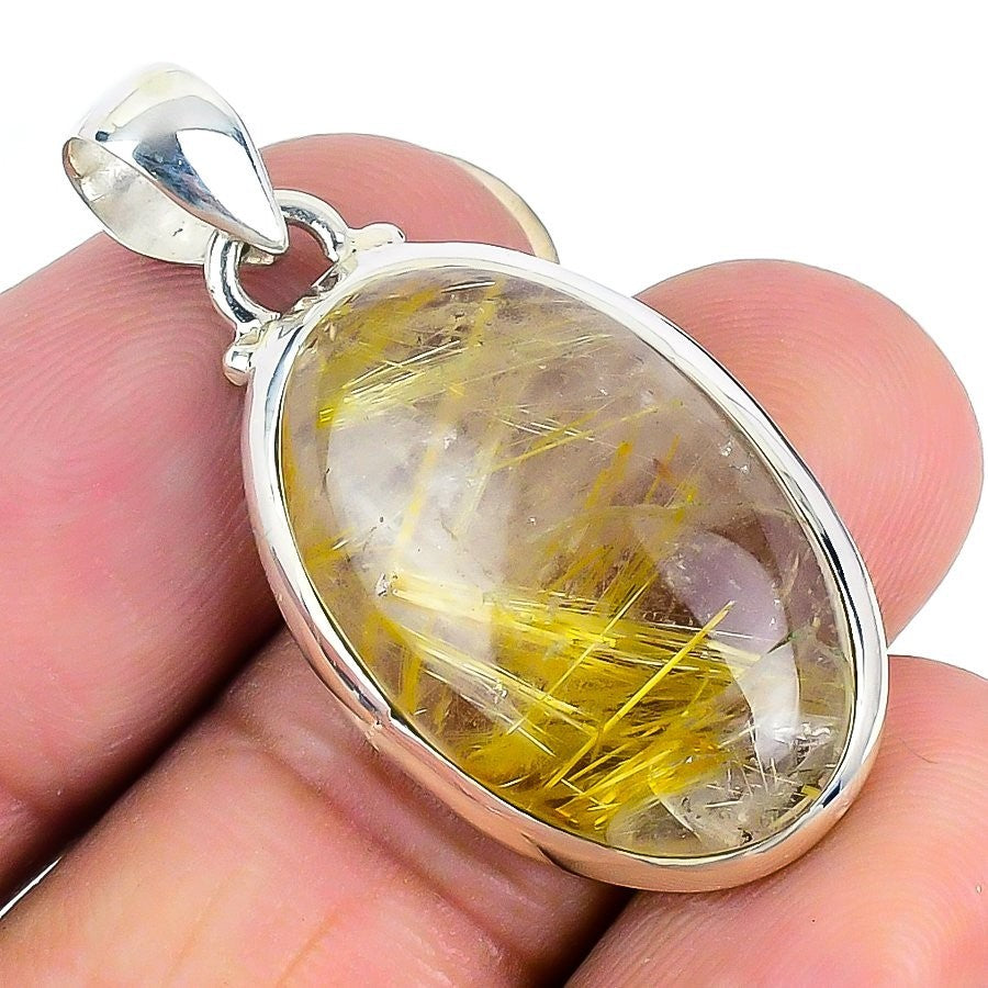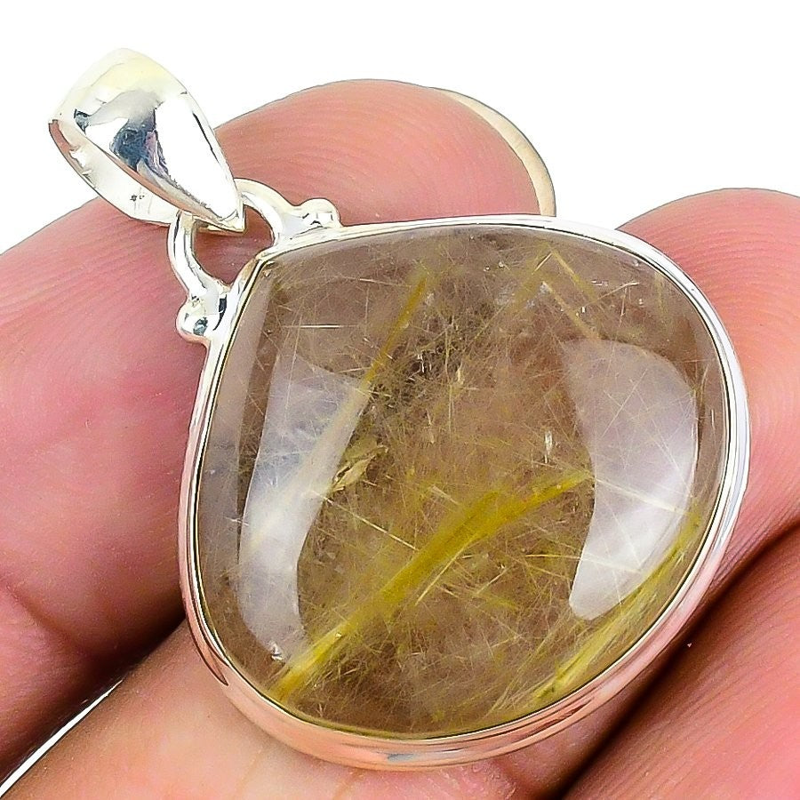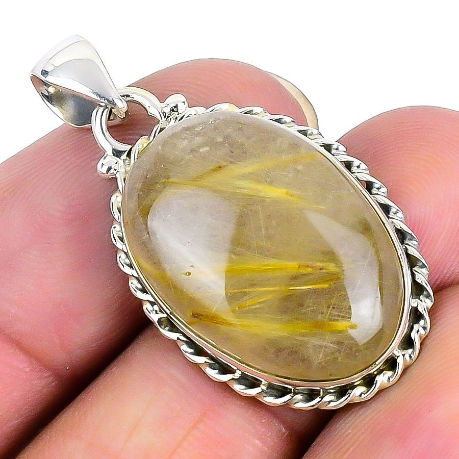 Daughters Day Deal Golden Rutile Gemstone 925 Sterling Silver Pendant Jewelry