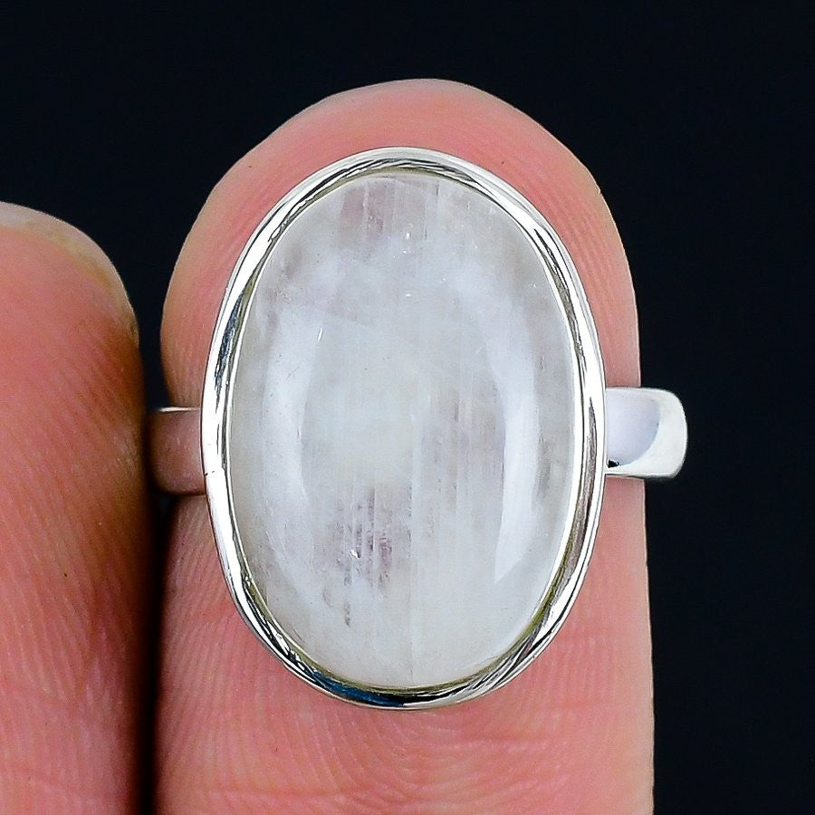 Natural Moonstone Sterling Silver Bezel June Birth Statement Ring Jewelry Size 6