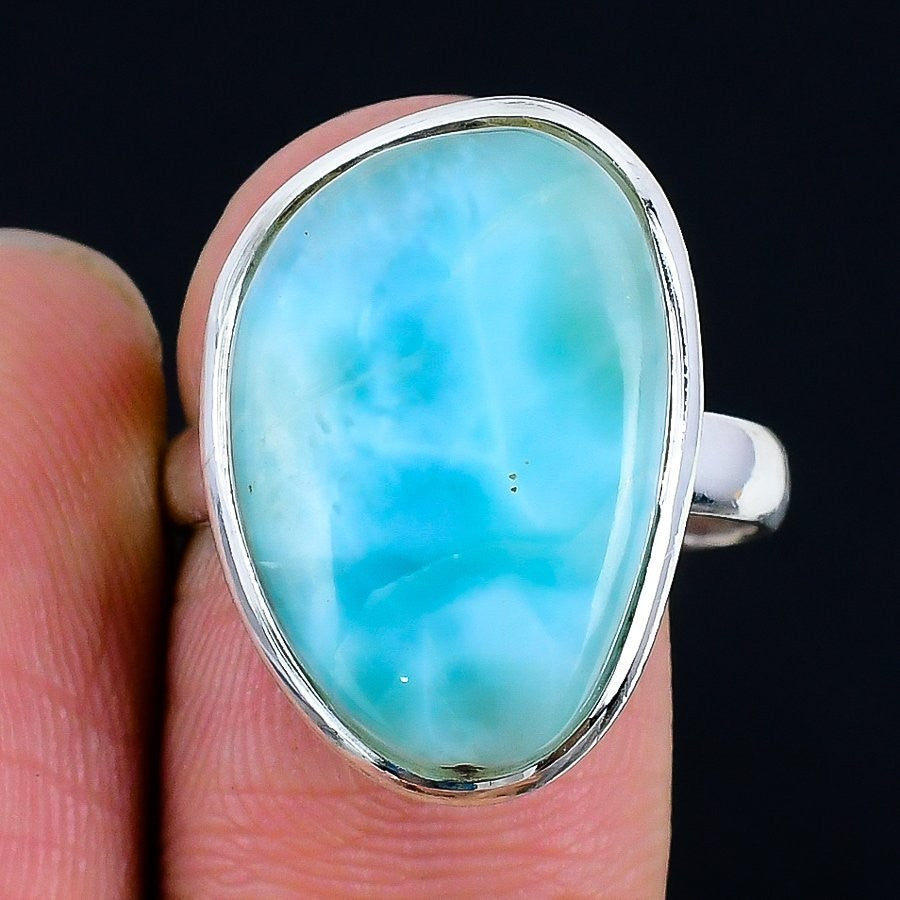Republic Larimar Stone Solid Silver Daughter Boho Statement Ring Jewelry Size 9