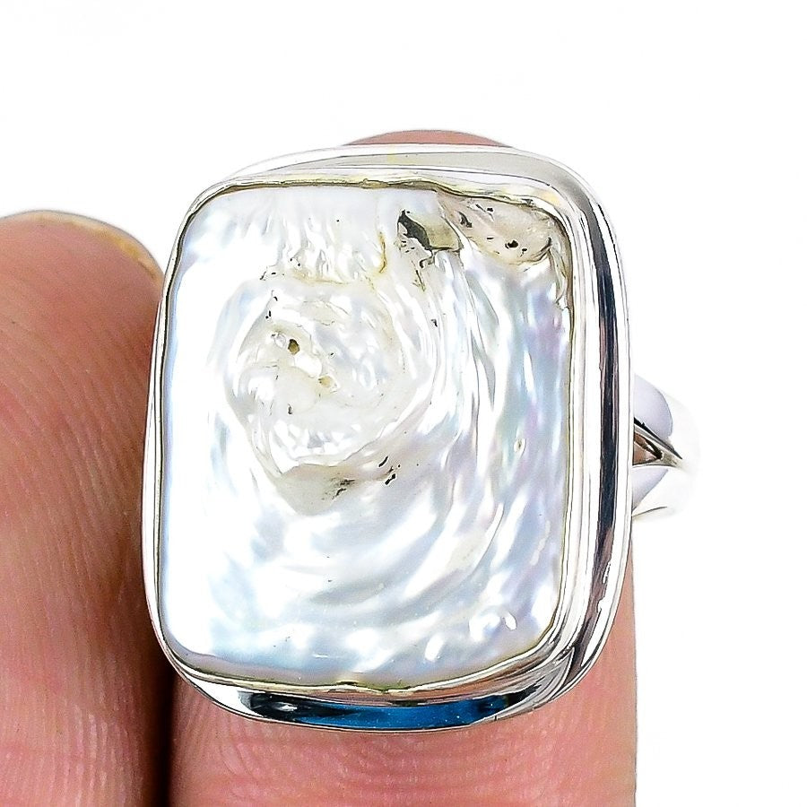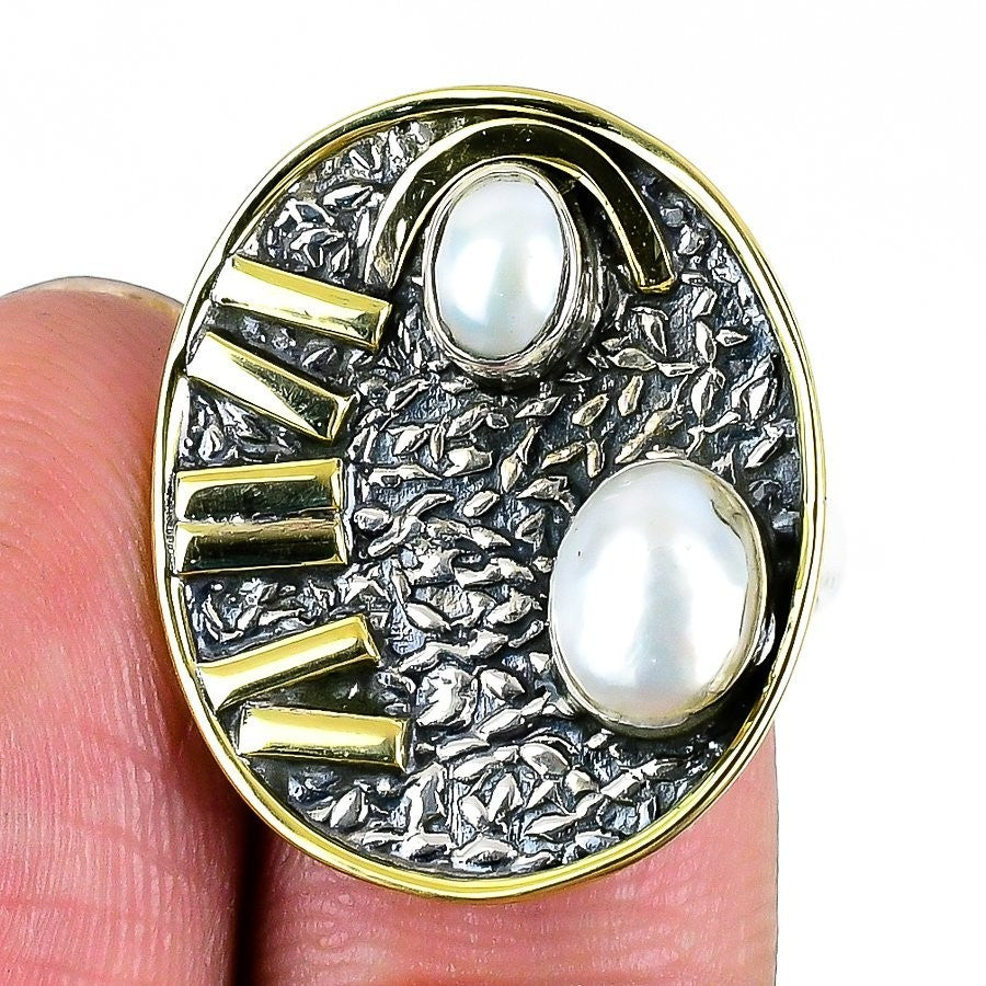 Daughters Day Deal River Pearl Gemstone 925 Silver Statement Artisan Ring US 7.5