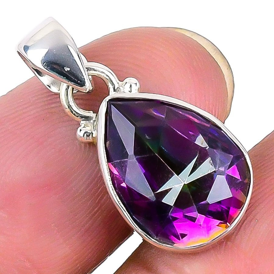 Rainbow Mystic Topaz Gemstone Solid Silver Wedding Anniversary Daughter Pendant