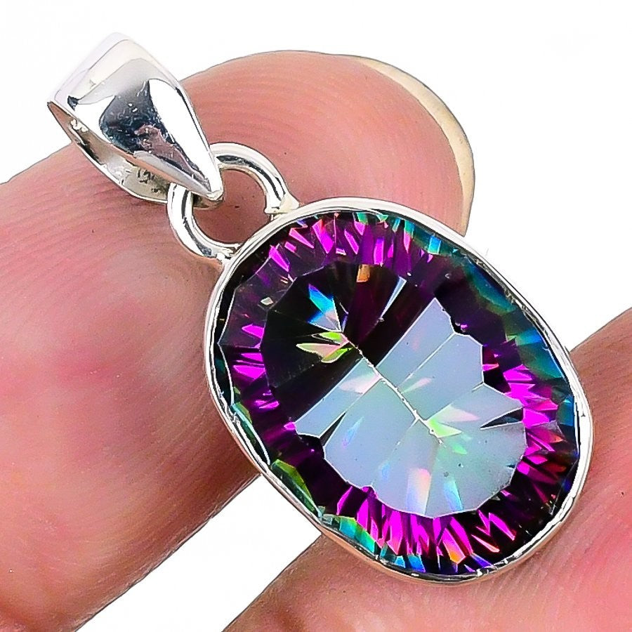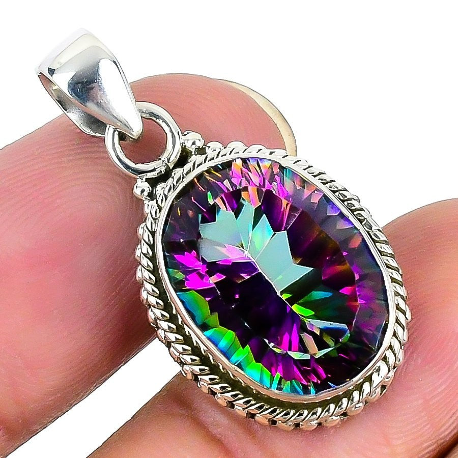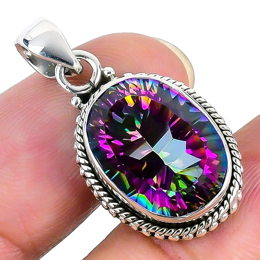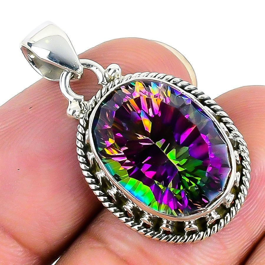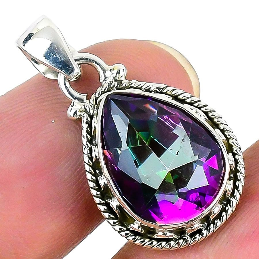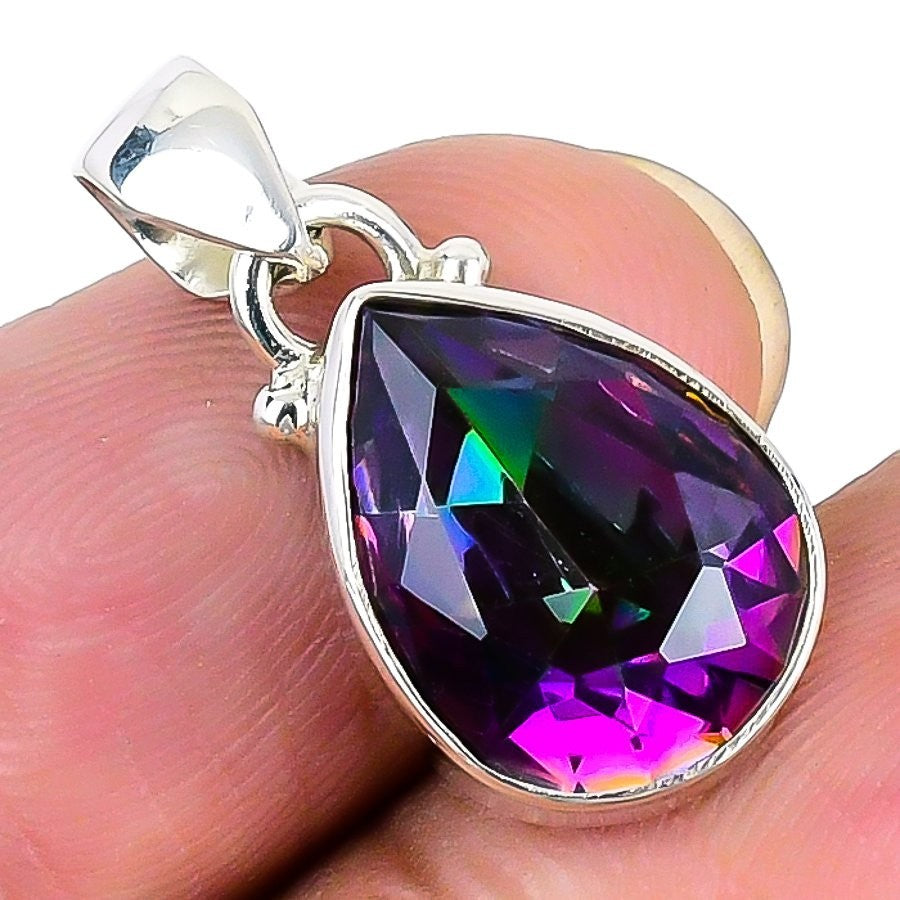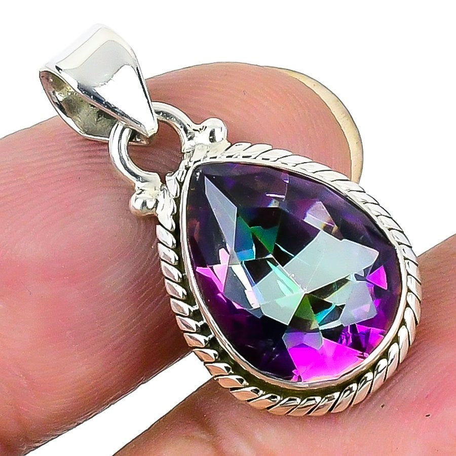 Rainbow Mystic Topaz Stone 925 Silver Engagement Wedding Anniversary New Pendant