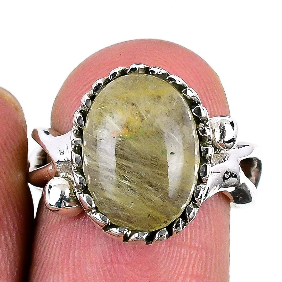 Golden Rutile Gemstone Solid Sterling Silver Statement New Ring Jewelry Size 6.5