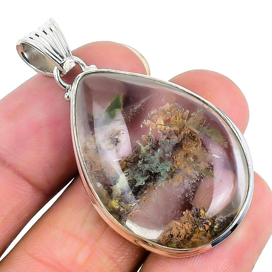 Lodolite Quartz Gemstone Solid Silver Anniversary Elegant Daughter Gift Pendant