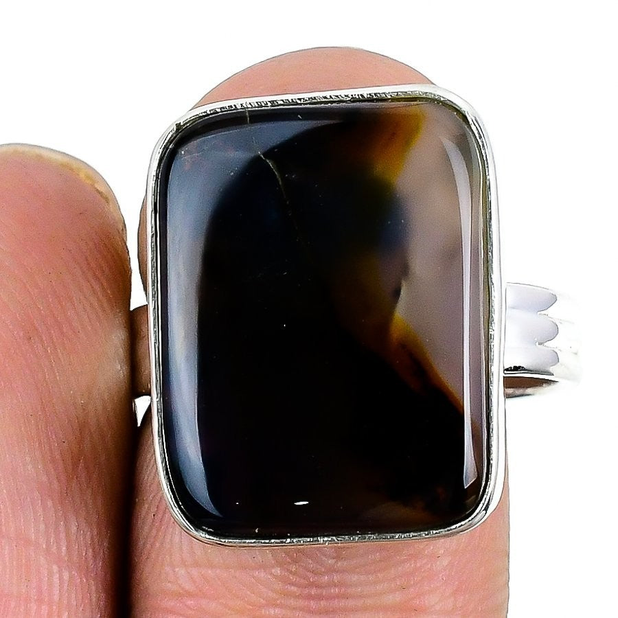 Montana Agate Gemstone Solid Sterling Silver Statement Wife Ring Jewelry US 8.5