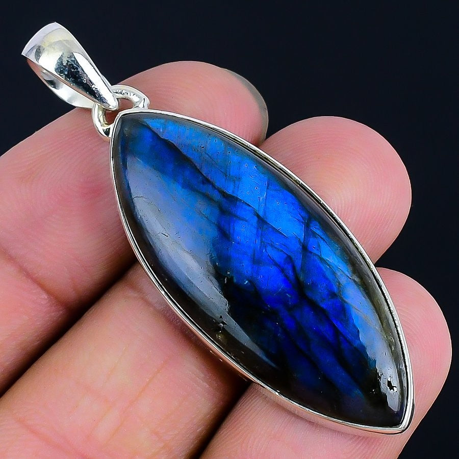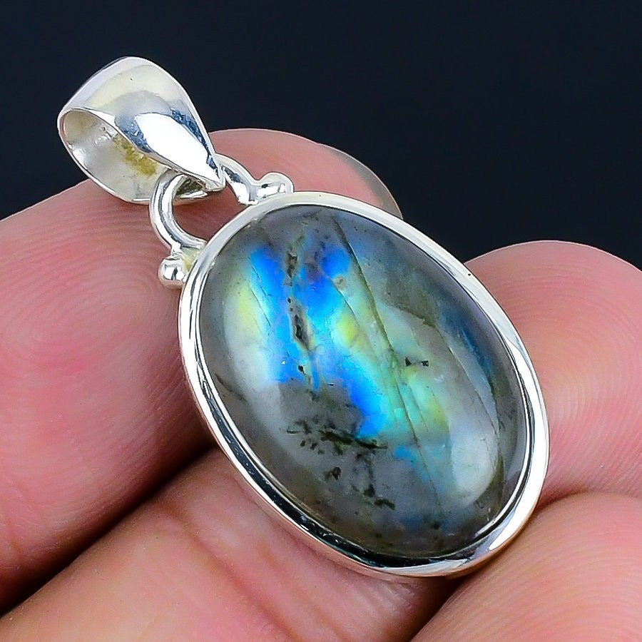 Natural Labradorite 925 Sterling Silver Anniversary Bezel Wedding Wife Pendant