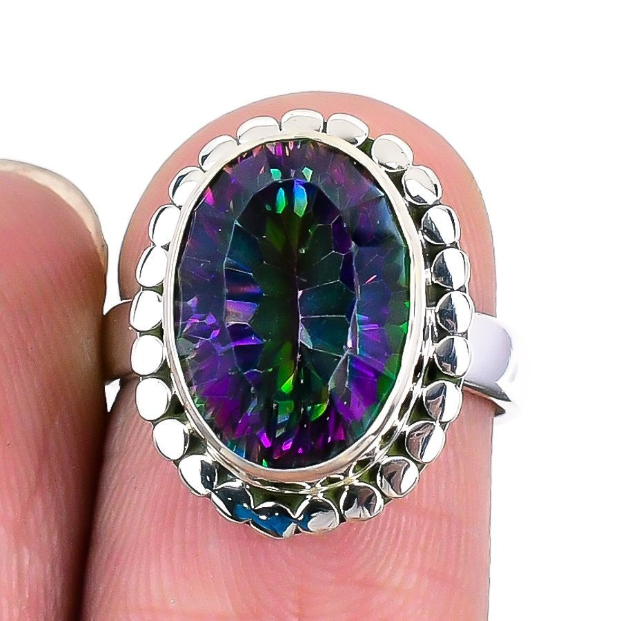 Mystic Topaz Stone Statement Mother Engagement Ring Jewelry Size 6 Solid Silver
