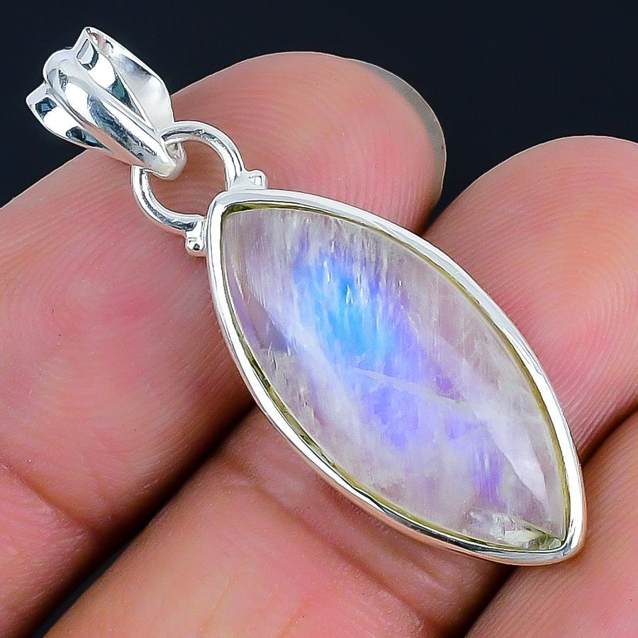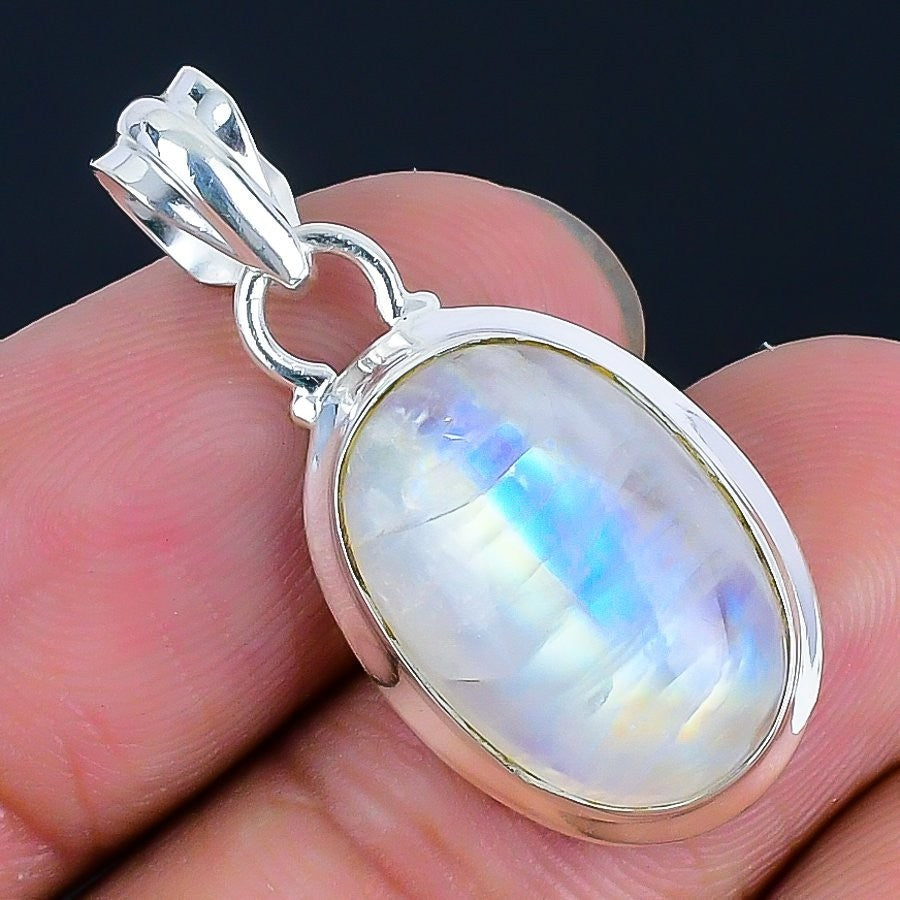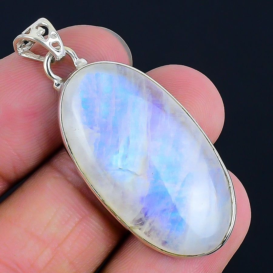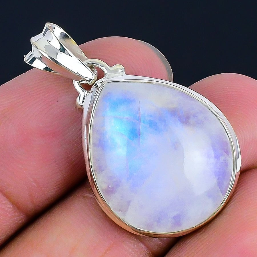 Moonstone Gemstone Unique Bezel Daughter Engagement Wedding Pendant Solid Silver