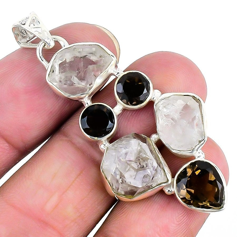 Herkimer Daimond Gemstone Sterling Silver Handmade Ethnic Bezel Pendant Jewelry