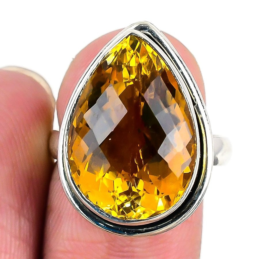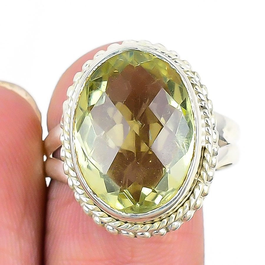 Lemon Gemstone 925 Sterling Silver Bezel New Statement Mother Ring Jewelry US 10