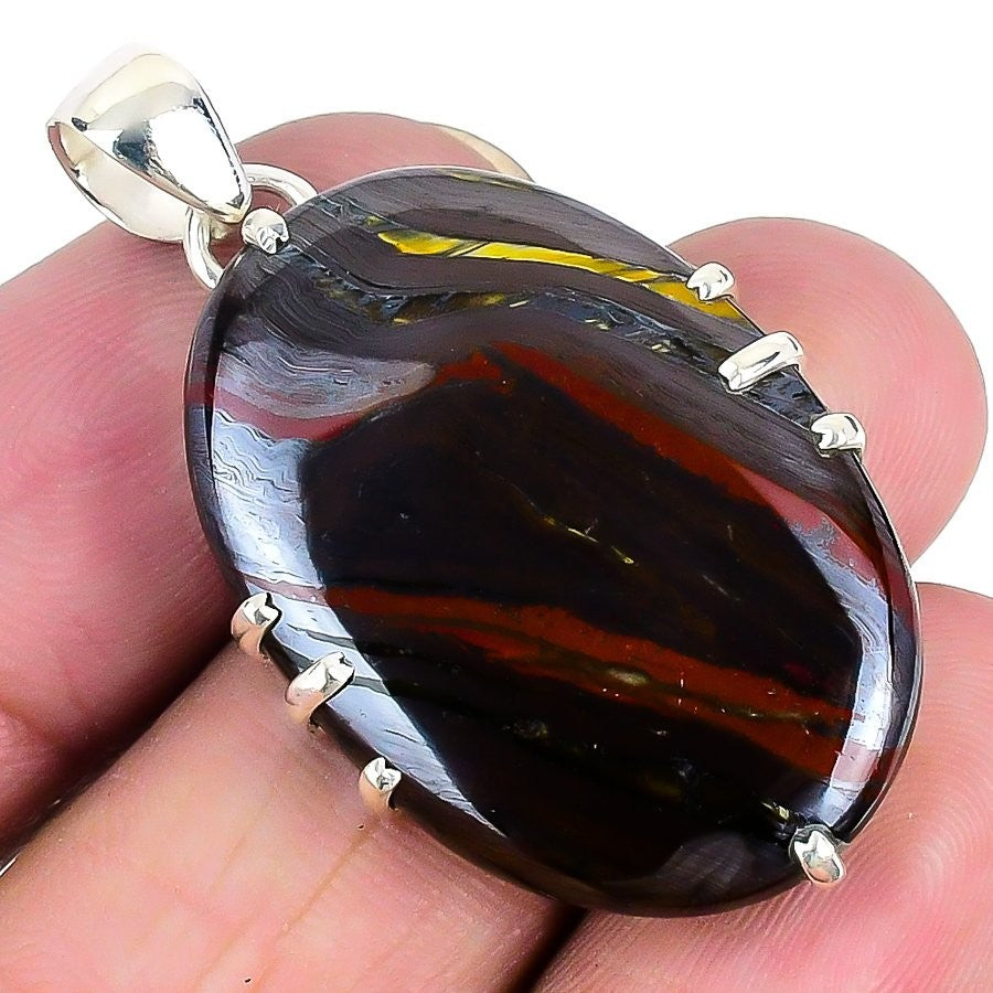 Natural Iron tiger eye Bezel Wedding Engagement Pendant Solid Sterling Silver