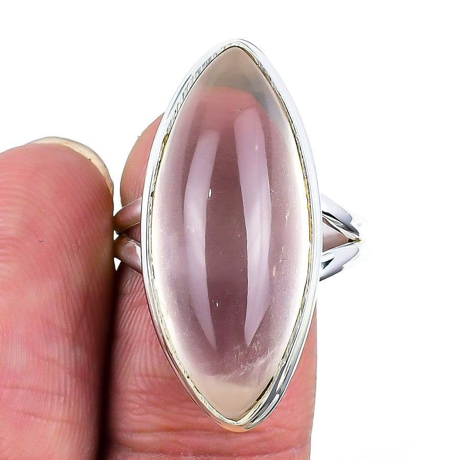 Natural Rose Quartz Sterling Silver Statement Daughter Gift Ring Jewelry US 10