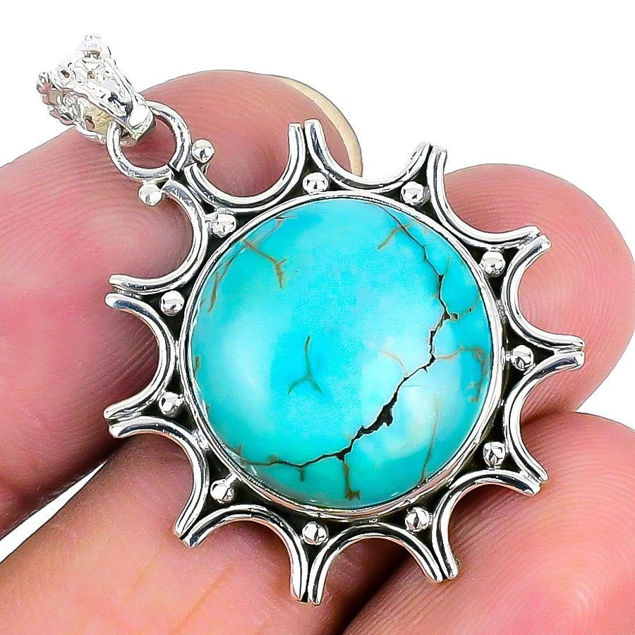Throat Chakra Tibetan Turquoise Stone Handmade Sister Pendant 925Ā SolidĀ Silver