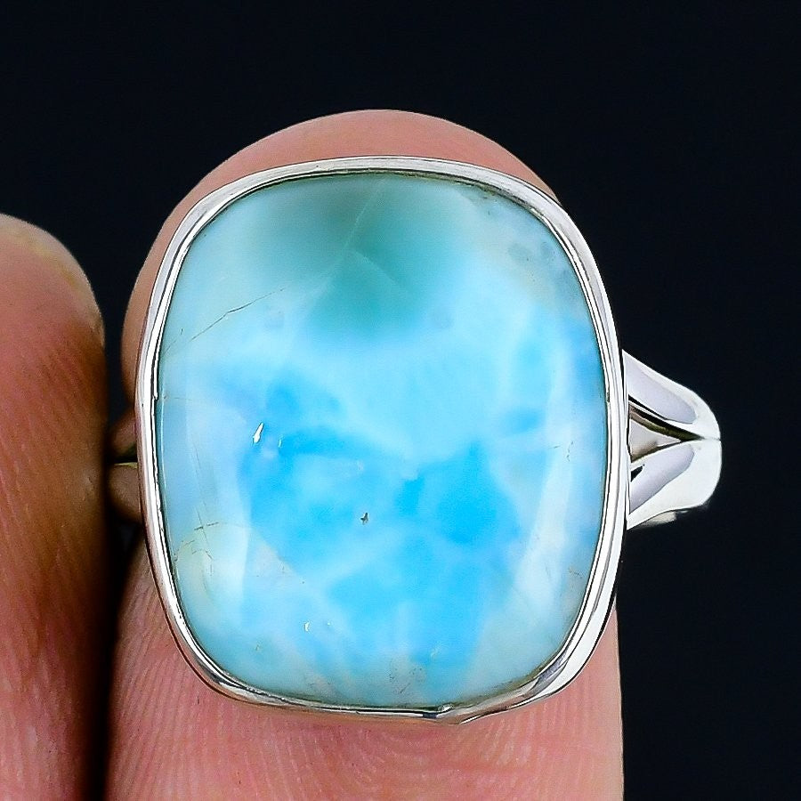 Natural Republic Larimar Sterling Silver Handmade Statement Daughter Ring US 8.5