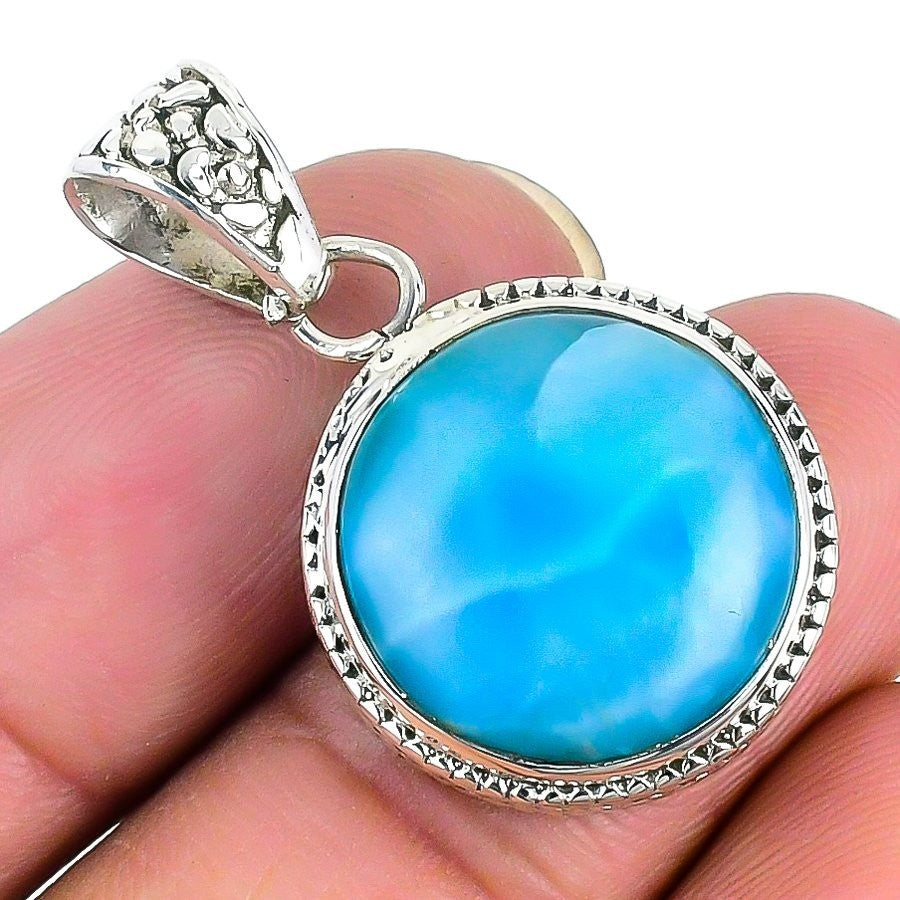 Republic Larimar Stone Solid Sterling Silver Engagement Bezel Pendant Jewelry
