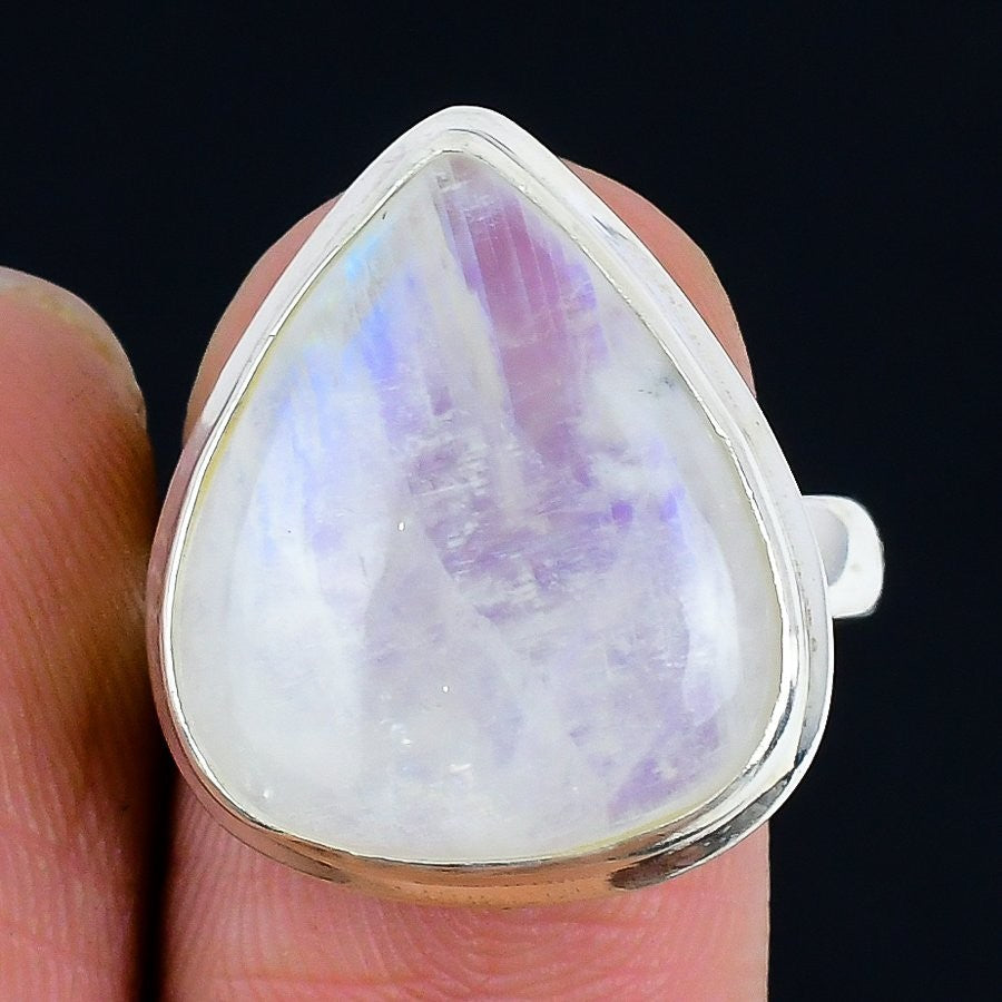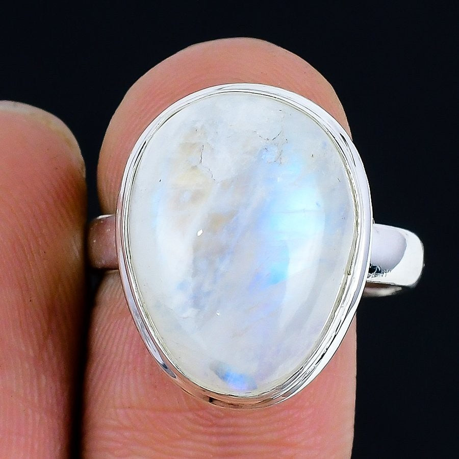Natural Moonstone Sterling Silver Statement Trendy Birthday Ring Jewelry US 8.5