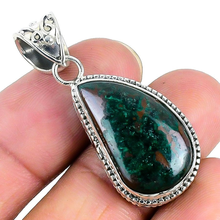 Crysocolla Stone 925 Silver Mother Bezel Trendy Birthday Engagement New Pendant