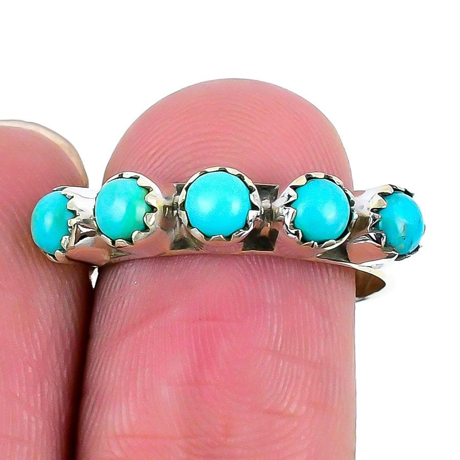 Tibetan Turquoise Gemstone 925 Solid Silver Birthday Statement Boho Ring US 7.5