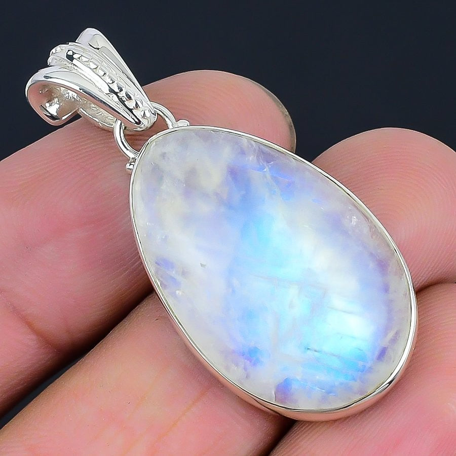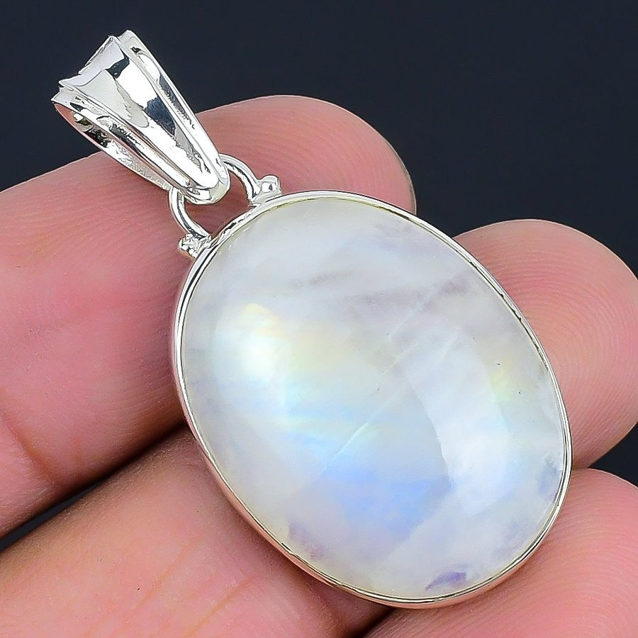 Crown Chakra Natural Moonstone 925 Solid Silver Anniversary Engagement Pendant
