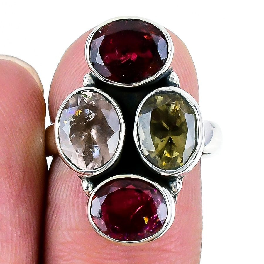 Multi Tourmaline Stone 925 Silver New Statement Handmade Daughter Gift Ring US 7