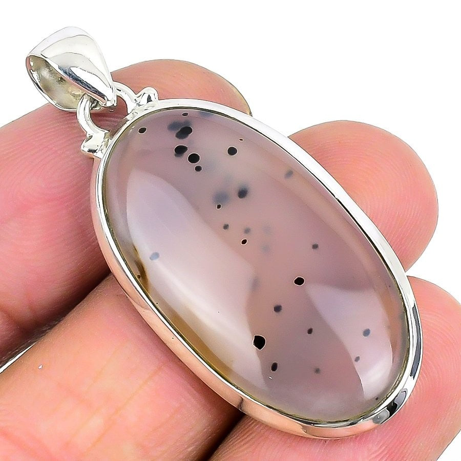 Natural Montana Agate 925 Sterling Silver Channel Set Boho Wife Pendant Jewelry