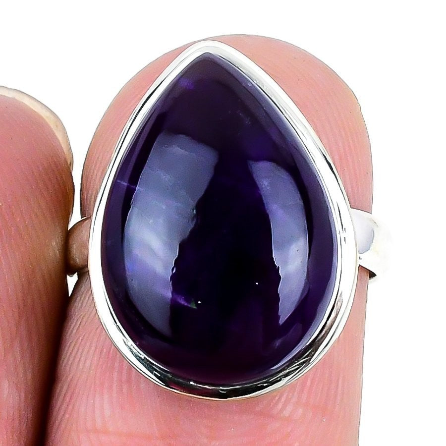 Natural Sage Amethyst Statement Elegant Ring Jewelry Size 6 925 Sterling Silver