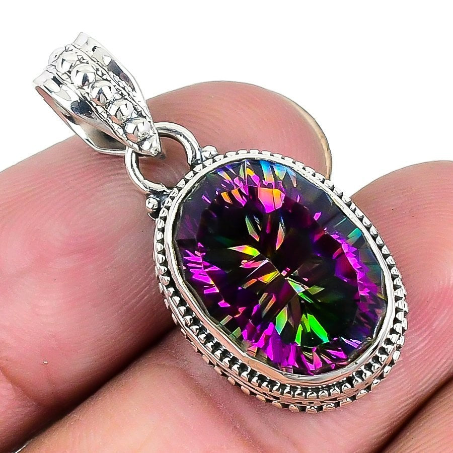 Mystic Topaz Gemstone Birthday Trendy Wedding Daughter New Pendant Solid Silver