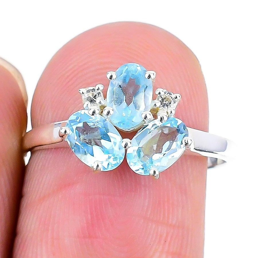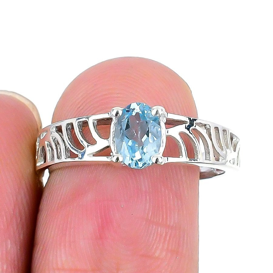 Swiss Blue Topaz Stone Sterling Silver Wife Trendy Statement Ring Jewelry US 8.5