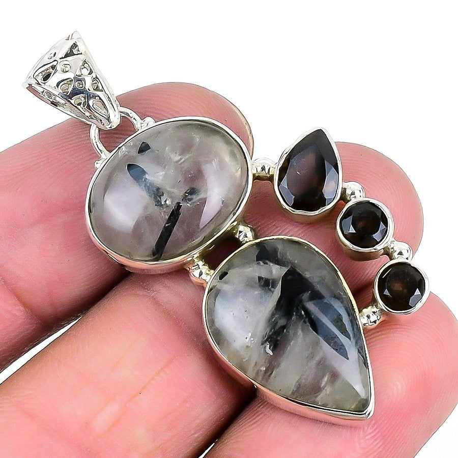 Black Rutile Stone 925 Sterling Silver Channel Set Artisan New Pendant Jewelry