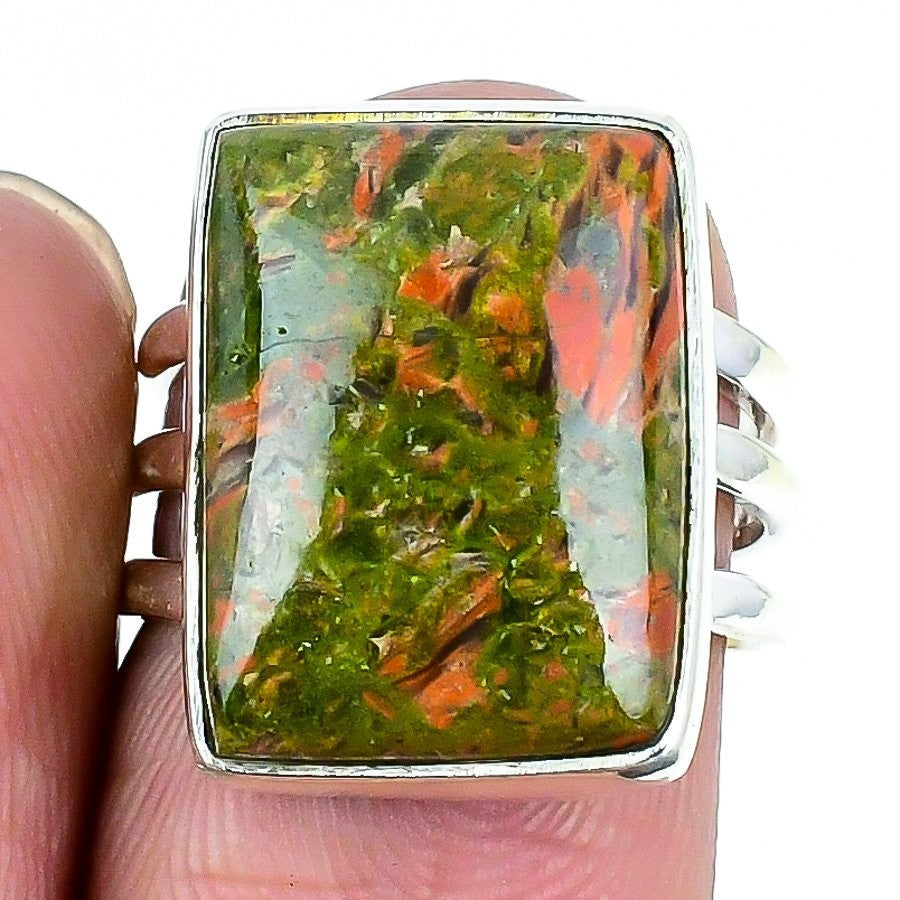 Natural Unakite Solid Silver Statement Channel Set Art Deco Ring Jewelry US 6