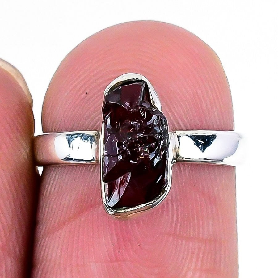 January Garnet Rough Stone New Statement Ring Jewelry Size 5.5 925Ā SolidĀ Silver