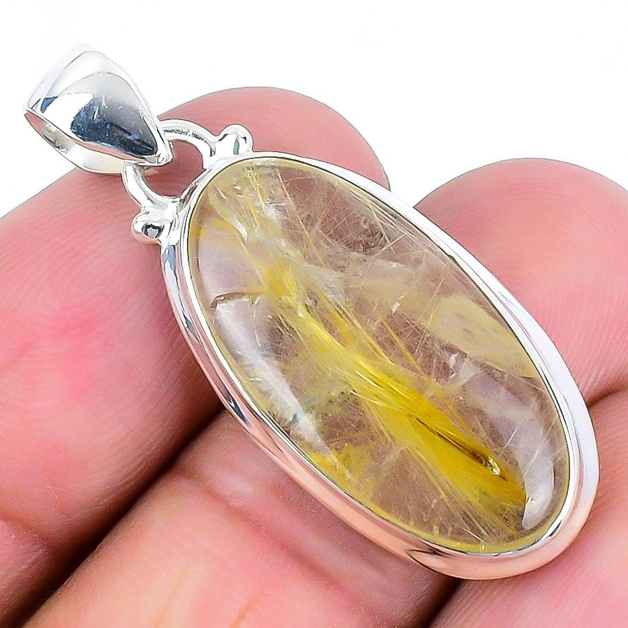 Golden Rutile Stone Sister Daughters Day Handmade Pendant 925 Sterling Silver