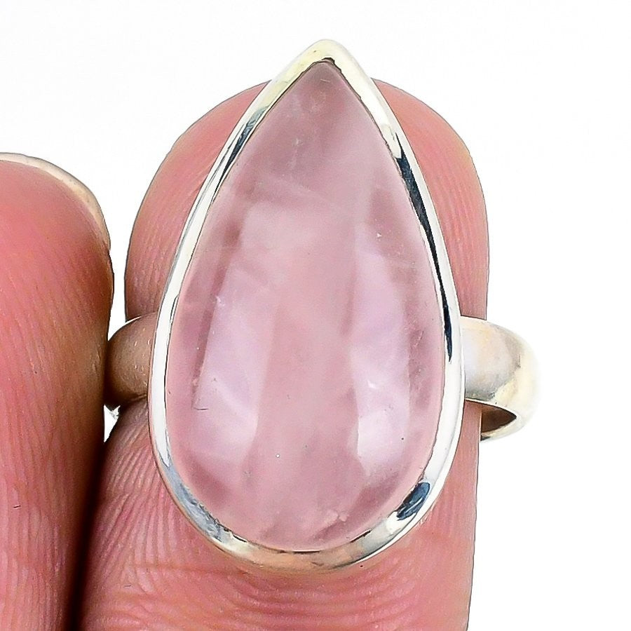 Natural Rose Quartz Statement Anniversary Boho Ring Solid Sterling Silver US 7.5