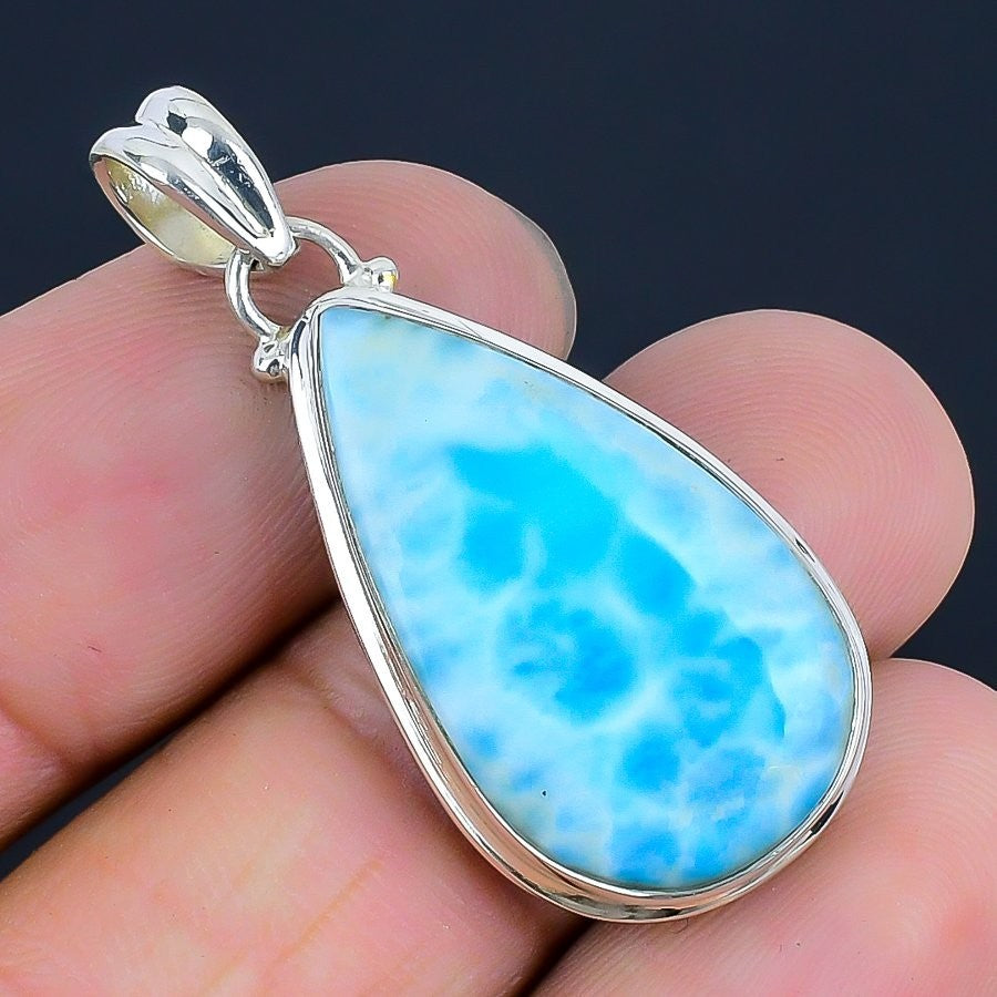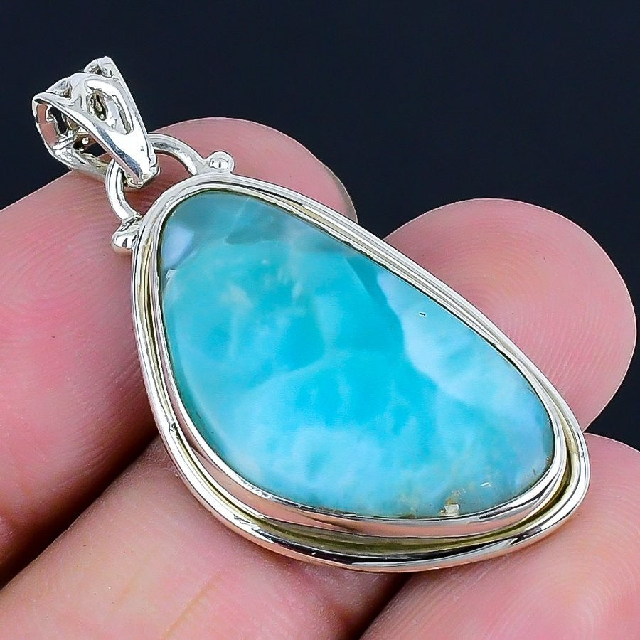 Larimar Gemstone Sterling Silver Throat Chakra Birthday Anniversary Boho Pendant