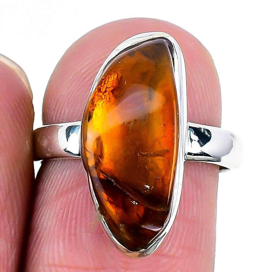 Natural Baltic Amber 925 Silver Unique Statement Ethnic Mother Ring Jewelry US 7
