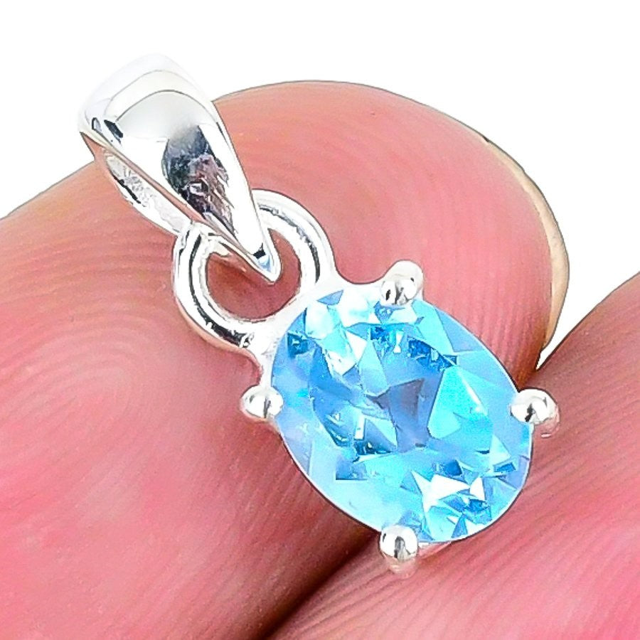 Daughters Day Sale Swiss Blue Topaz Gemstone 925Ā SolidĀ Silver Artisan Pendant