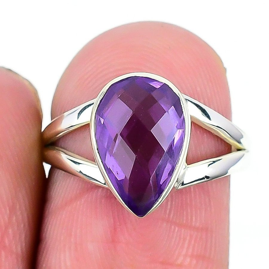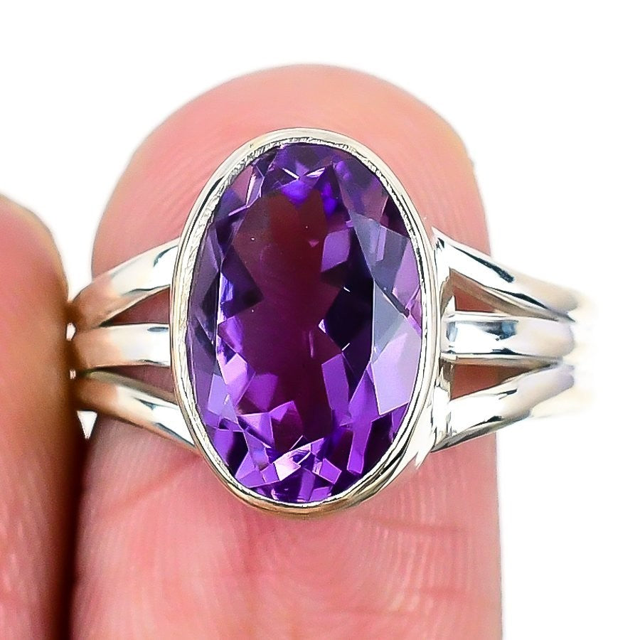 Amethyst Stone Solid Sterling Silver Cluster Engagement Wife Ring Jewelry Size 9